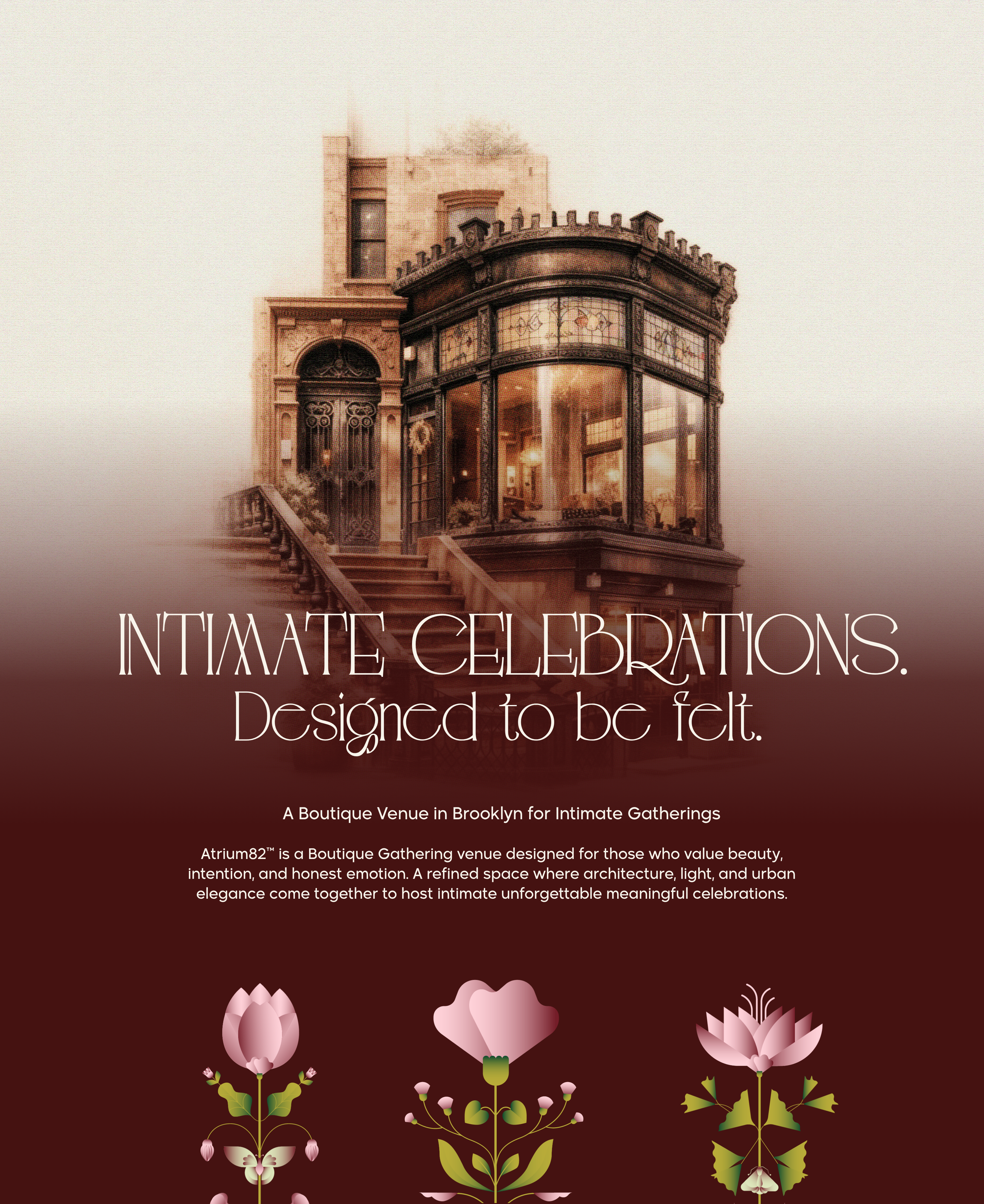 Rooted in Brooklyn and shaped by community, Atrium82™ brings together architecture and intimacy, structure and spontaneity. The result is a venue that feels refined yet human, elegant yet alive. This is where presence matters more than perfection, and every celebration feels unmistakably personal.